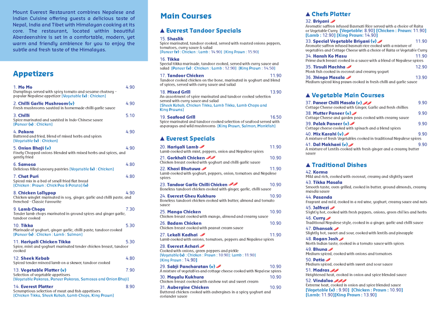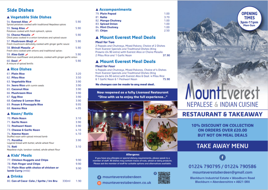 If you have any allergies or special dietary requirements, please speak to a member of staff. All dishes may contain traces of nuts, wheat or dairy products. Please ask the member of staff or suitable options and alternatives available.